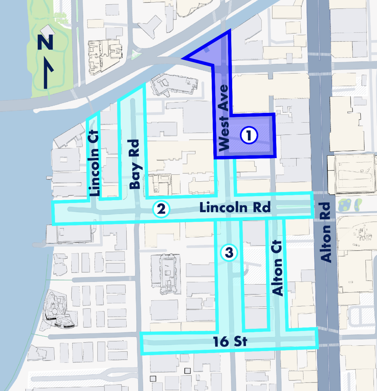 (West Avenue between the post office and just south of Lincoln Road; Lincoln Road between Alton Road and the bay; and the Bay Road and Lincoln Court street ends):