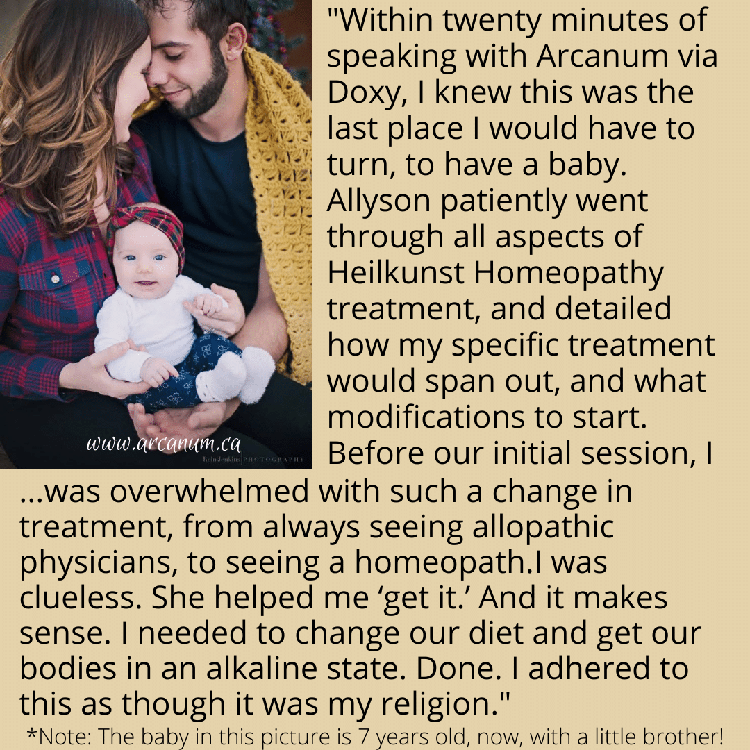 This month, we’re focusing on natural fertility. We wrote a whole book about it and we give it away for FREE here: www.naturalfertilitybook.com. Arcanum also has a new Heilkunst Practitioner, Danielle Petersen, who specializes in natural fertility for couples, as well as wholistic birth support, and women’s health in general. She’s taking new clients at present.