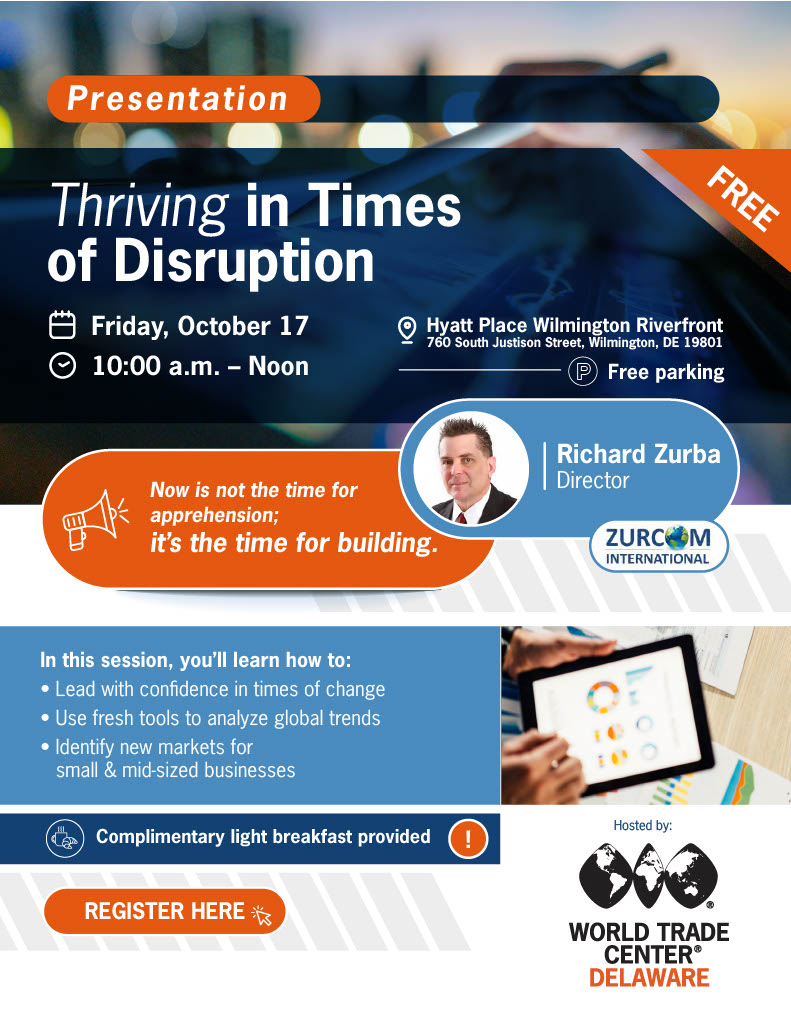 | | World Trade Center® Delaware is the state’s premier international business resource. We help companies, especially small, medium-sized and emerging enterprises, to grow their international business. We provide trade leads, training programs, job leads, networking, matchmaking, trade mission and reverse trade mission opportunities for Delaware companies. We serve all types of companies in various sectors including agriculture, environmental remediation, IT, medical equipment manufacturing, biopharmaceuticals, financial, legal and real estate services. For more information visit us at www.wtcde.org. | | Copyright © 2025. All Rights Reserved. | | | | |