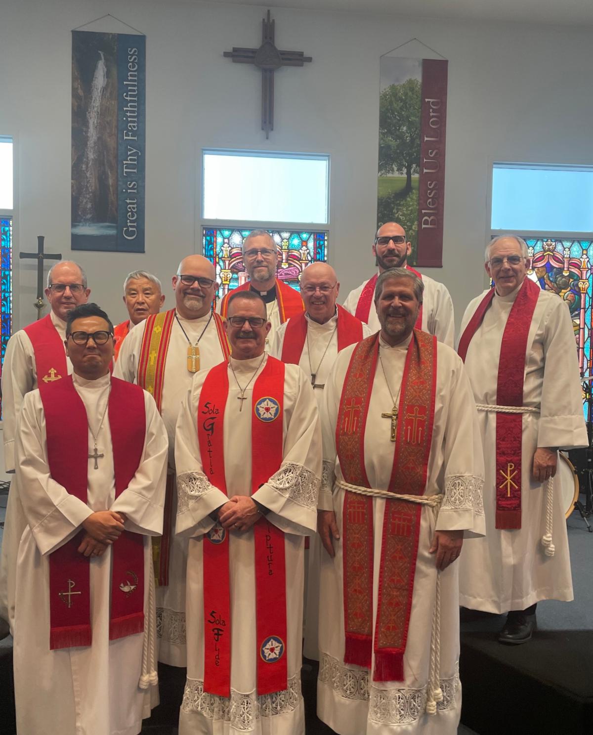 David Singer was ordained and installed as an SMP associate pastor at Emmanuel Lutheran Church in Clovis. Singer and Jake Eisinger of St. Mark Lutheran Church in Elko completed the same SMP cohort at Concordia Seminary, St. Louis, and both continue to serve in law enforcement. Eisinger and his father, Alan (retired pastor) traveled from Elko, Nevada, to take part in the service.