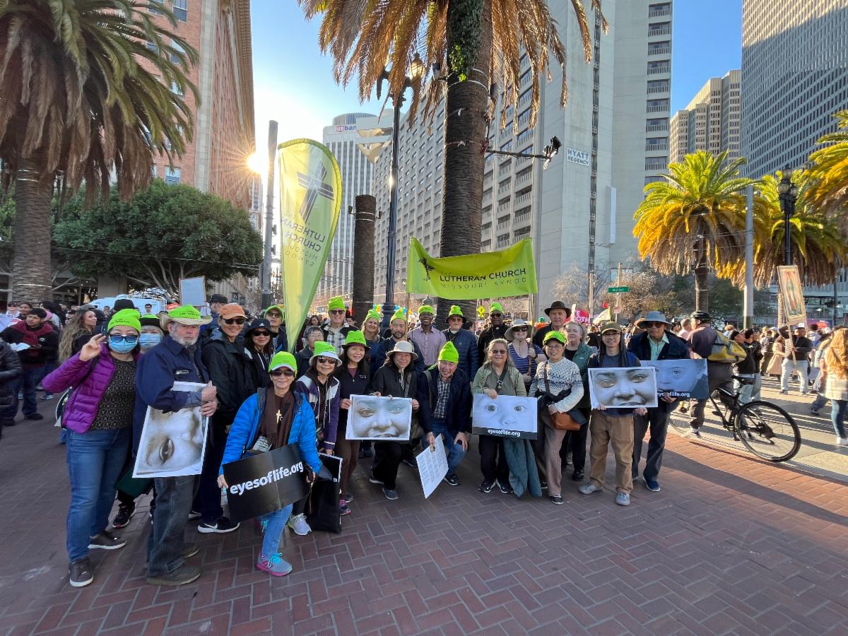 Many gathered at West Portal Lutheran Church before joining others at Civic Center Plaza.