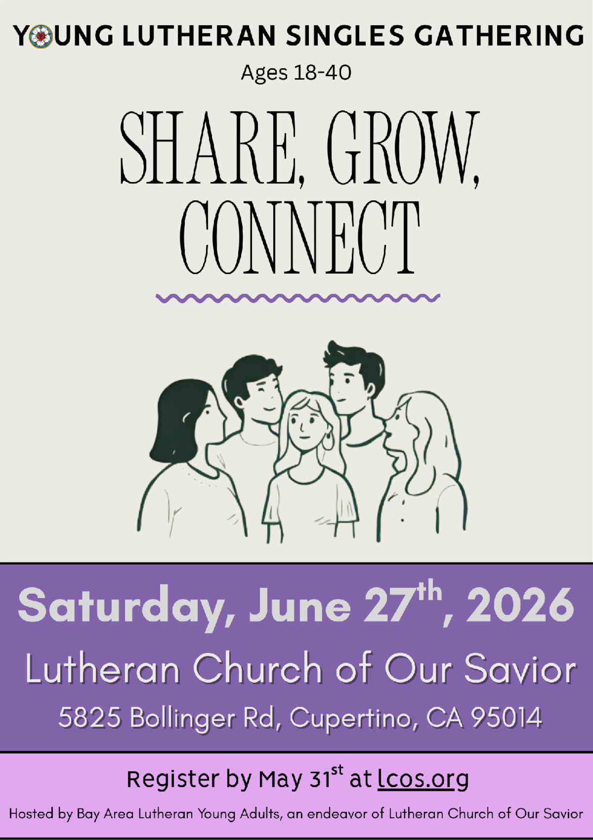 Join BALYA at Lutheran Church of Our Savior, Cupertino, CA for a Young Adult Singles Gathering—an event designed for fellowship, faith, and meaningful connection!