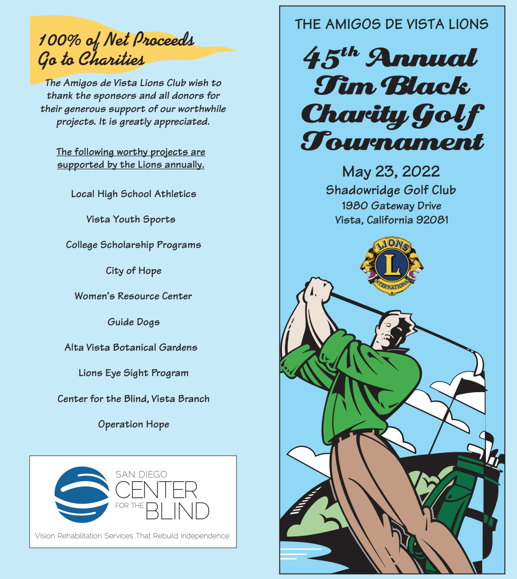 The Amigos de Vista Lions Club present the 45th Annual Tim Black Charity Golf Tournament.