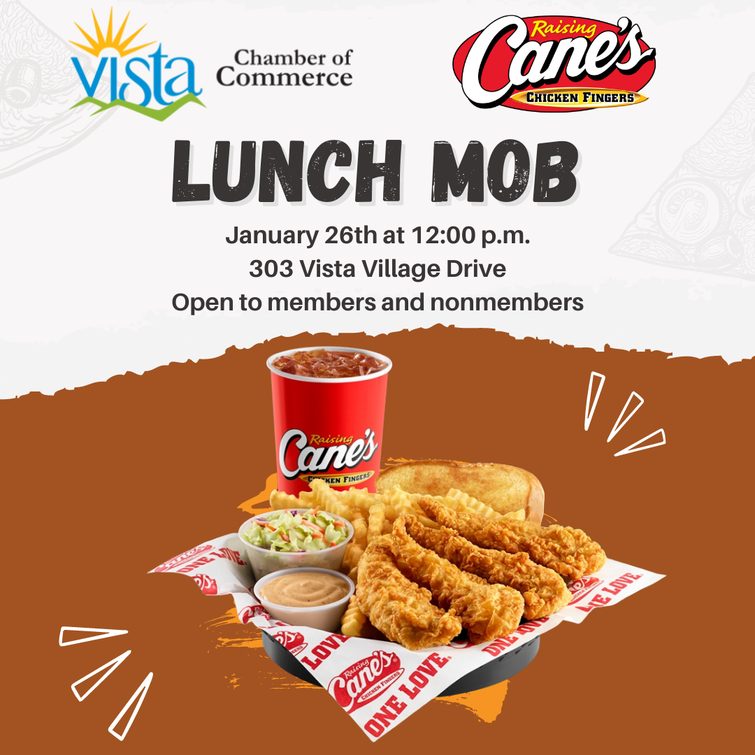 Our first Lunch Mob of the year will be at Raising Cane's. Open to members and non-members, feel free to also bring any guests with you. This is a no-host event, and everyone pays for their own lunch. We hope to see you there!