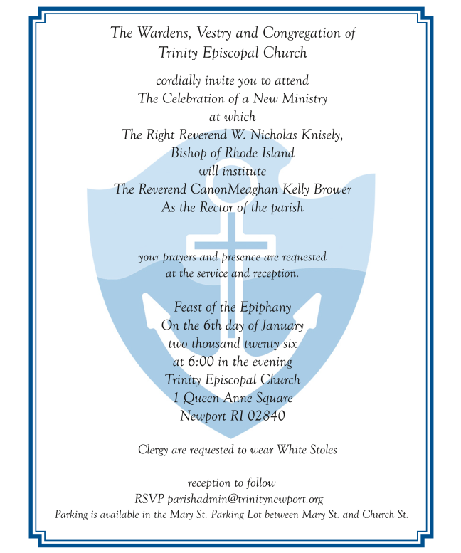 We had an incredible Christmas at Trinity Church, and our celebrations are not yet complete! This Sunday is our second Sunday of Christmas and on Tuesday, January 6 at 6pm we will worship on the Feast of the Epiphany with a Celebration of New Ministry - I will be officially instituted as your rector. The Bishop will be here to officiate and we will welcome clergy and other guests from around the city and diocese.