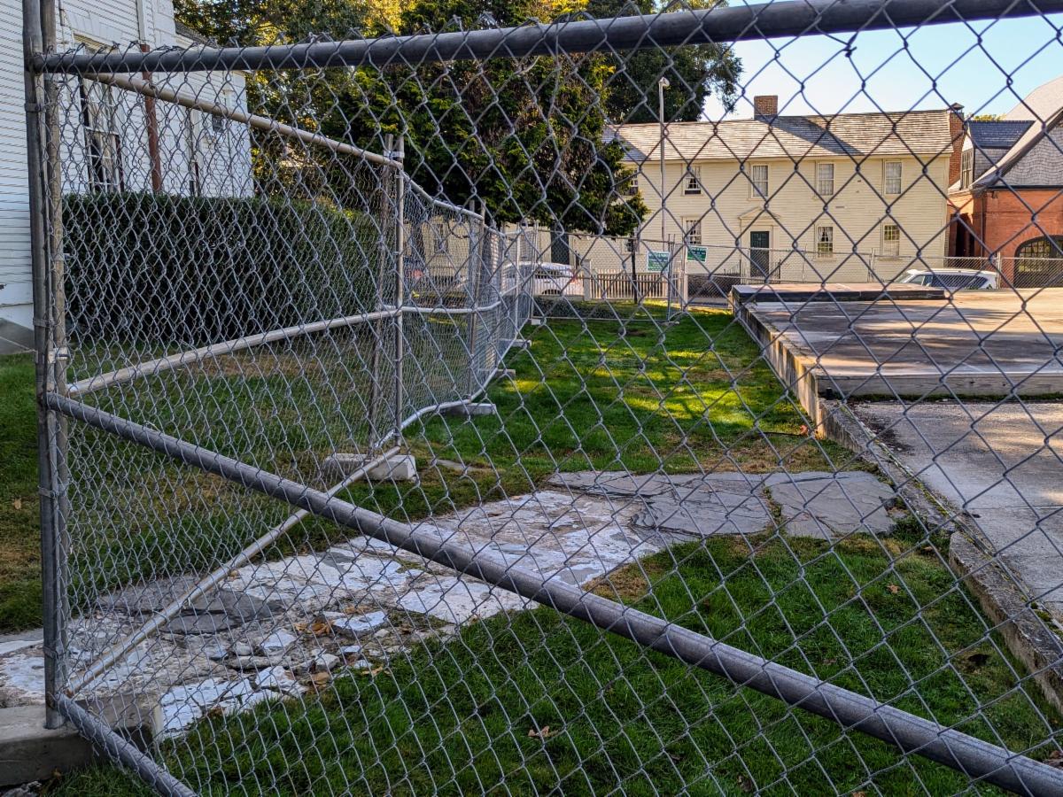 Arriving at Trinity on Thursday, I saw the fence installed around the “slab,” harbinger of construction on the new building that will begin before Thanksgiving.
