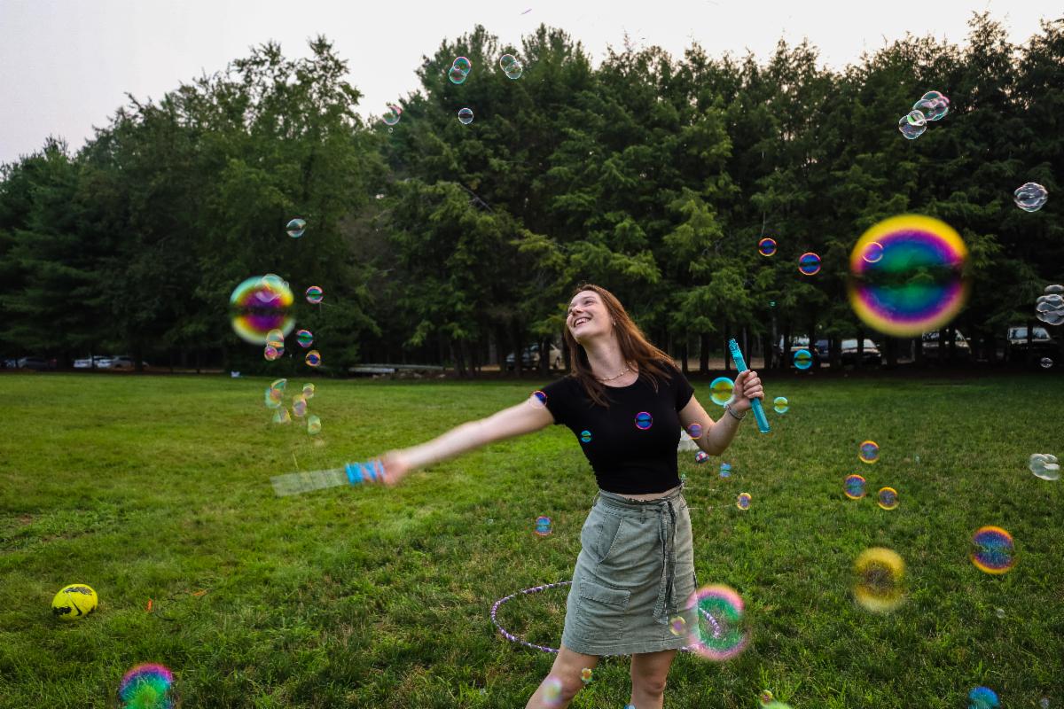 For almost five years I've had this photo hanging in my office. The young woman featured here was the head counselor one summer at the Episcopal Conference Center summer camp, a job that was often difficult and thankless. Emily was wonderful at managing the stressors of the job, and one day she took a break from her work to enjoy these bubbles. Someone captured this lovely moment in a photo. I have kept it close - a reminder of the importance of joy in all we do.