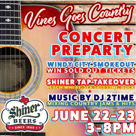 Vines on Clark is the perfect place to pregame before the Morgan Wallen shows! Their tap will be taken over by some epic Shiner Beers, with refreshing flavors like Peach Wheat, Sea Salt Lime, and Bock. Enter for a chance to win SOLD-OUT Windy City Smokeout tickets!