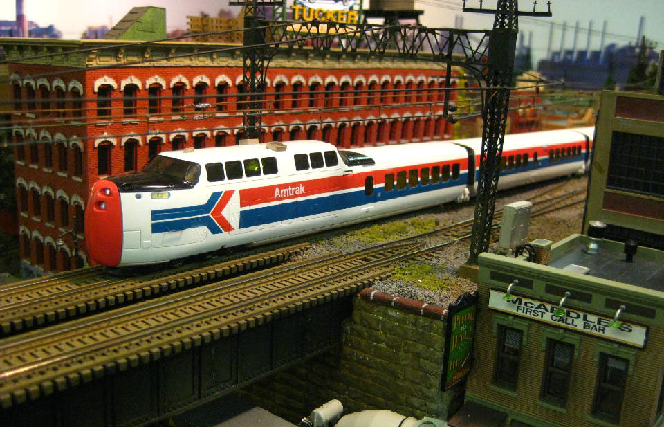 Late Amtrak TurboTrain on Rick Abramson's gorgeous layout. Photo courtesy Rick Abramson. |