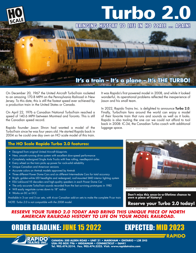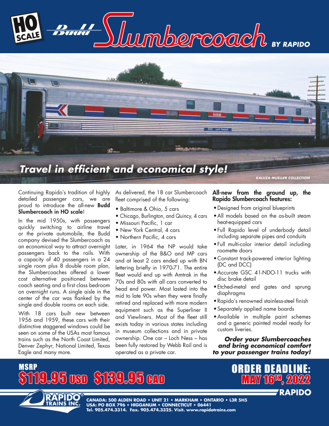Rapido Newsletter Vol. 151 ©2022 Rapido Trains Inc. |