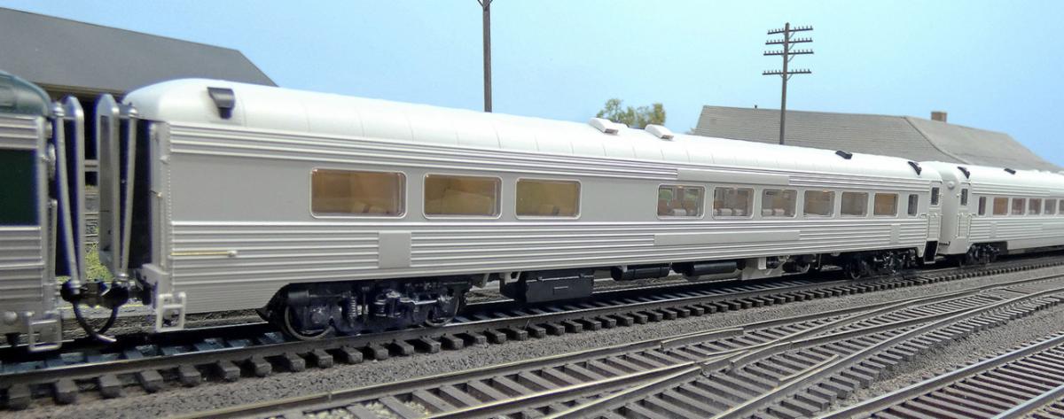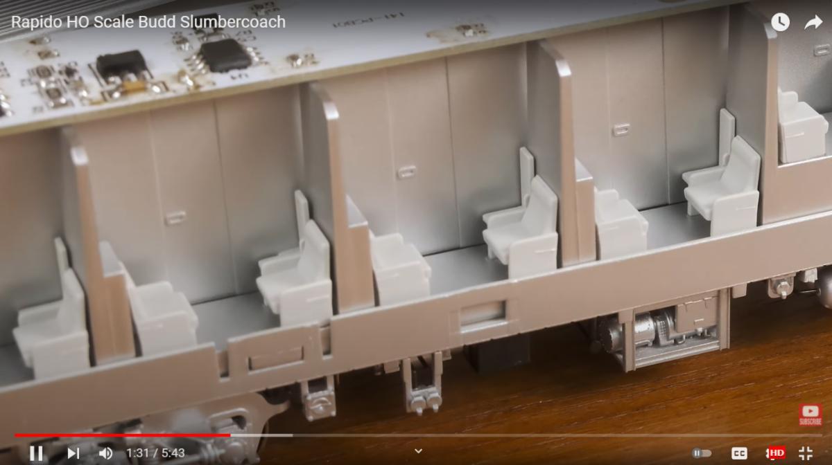 We still cannot get over how neat this photo is. Check out those detailed interiors. The aisle walls are separate parts so we could include all the door handle and other detail. It also means we can paint/print the wall details in appropriate colors. Compare that with the 25-year-old Slumbercoach models on your layout... |