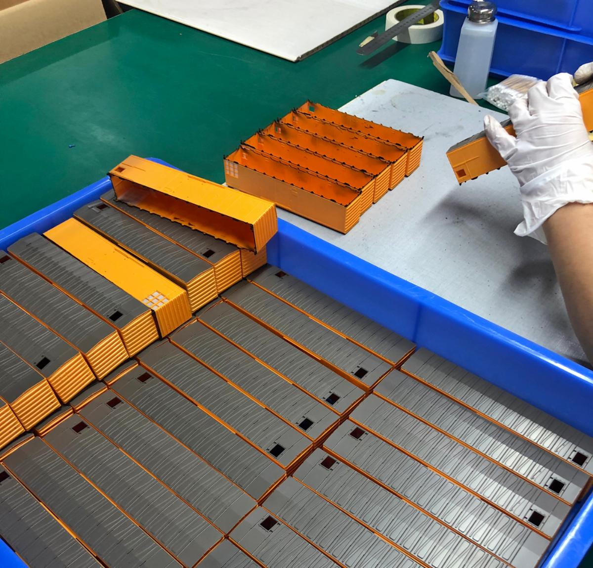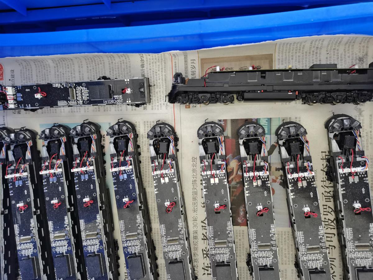 And now for the main event: The HO Scale E8s. Here the chassis are being readied to meet their bodyshells. |