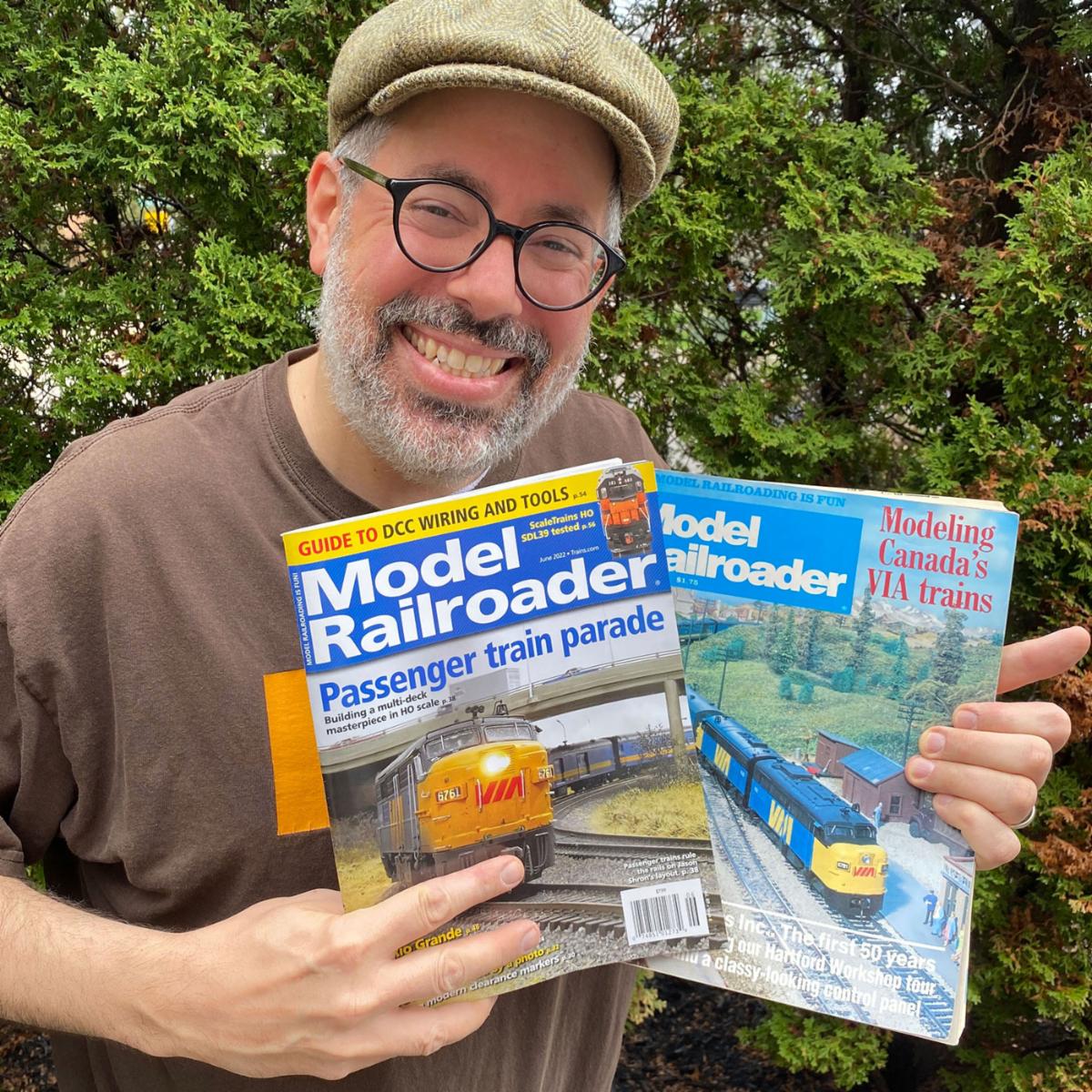 Jason with the June 2022 and May 1982 issues of Model Railroader. |