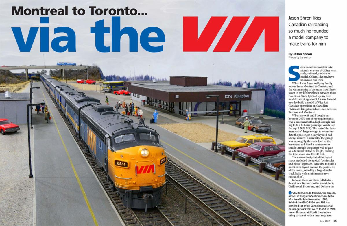 Not so Rapido. Our president and founder, Jason Shron, spends every spare moment in his layout room and has received the ultimate honour bestowed upon model railroaders in North America: his layout is the cover feature in the June issue of Model Railroader magazine. |