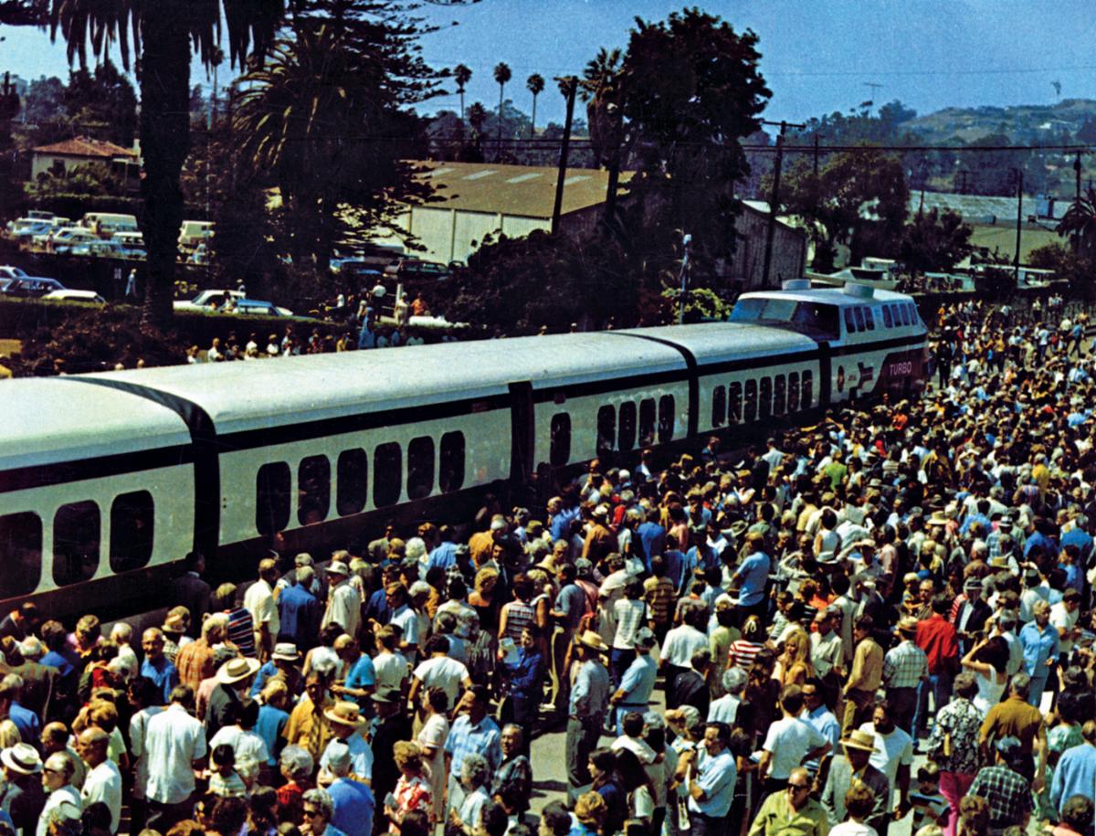 The UAC TurboTrain was born in the late and turbulent 1960s. It soon achieved worldwide fame for being the fastest production train in both the United States and Canada: a record it still holds to this day. In 1971, a three unit set, consisting of a power car, coach and power car, toured the United States in order to help introduce Amtrak and promote high speed rail service. The train made numerous stops throughout the US to show off its capabilities.
