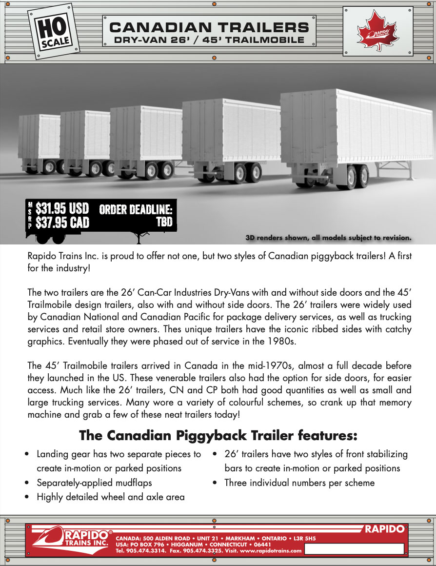 - NEW! HO Scale Canadian 26' Can-Car and 45' Trailmobile Trailers