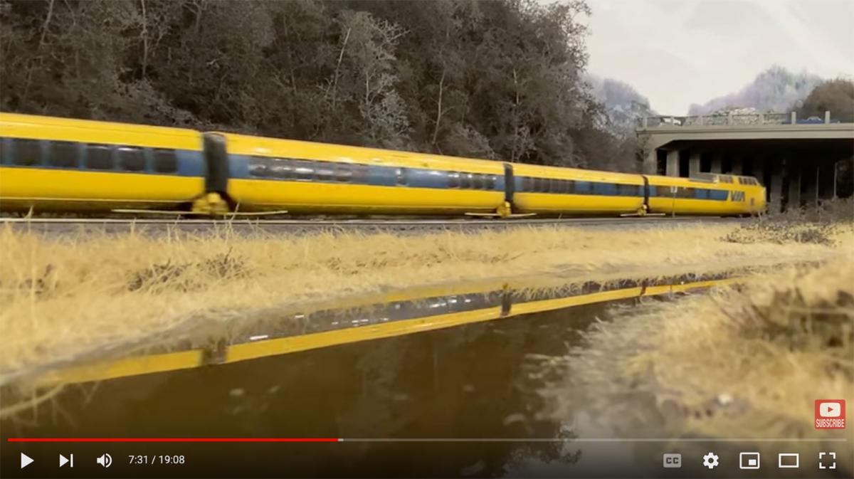 Make sure you watch the video about this very special train by clicking here or the photo below! That's Jason's layout, by the way. Beauty. |