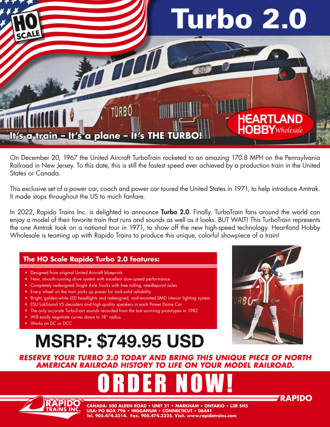 June Order Deadlines - June 15th, 2022 - HO Scale HO Scale UAC TurboTrain - "Turbo 2.0"