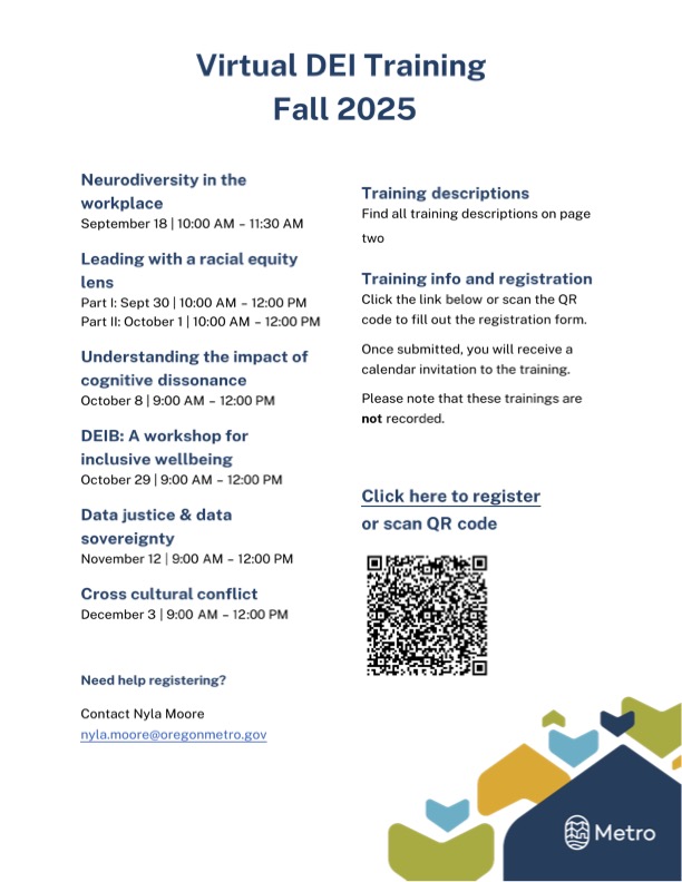 Metro’s Fall 2025 Diversity, Equity, and Inclusion (DEI) training schedule is now live—and as valued partners, you and your staff are warmly invited to participate.