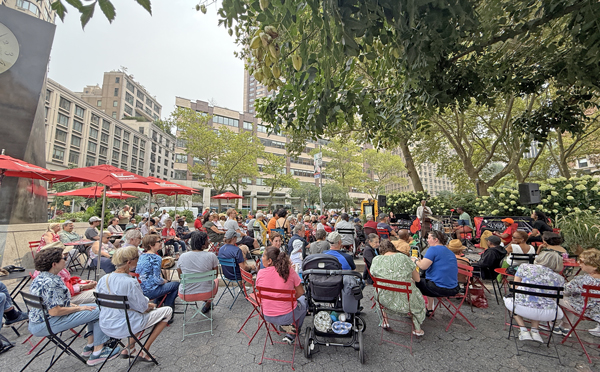 Our Summer Jazz Sensations concerts have been a smashing success! This year’s performances have drawn so many visitors to Dante Park (Broadway & 64th Street) that we’ve added 10 more tables and 20 more chairs so attendees can relax and enjoy cool jazz on these hot summer days.