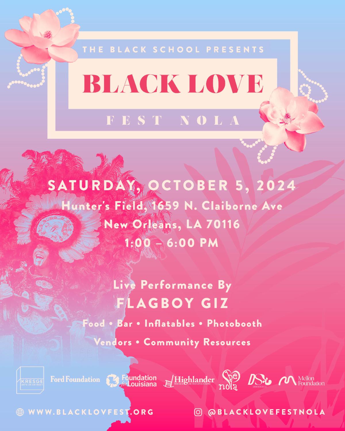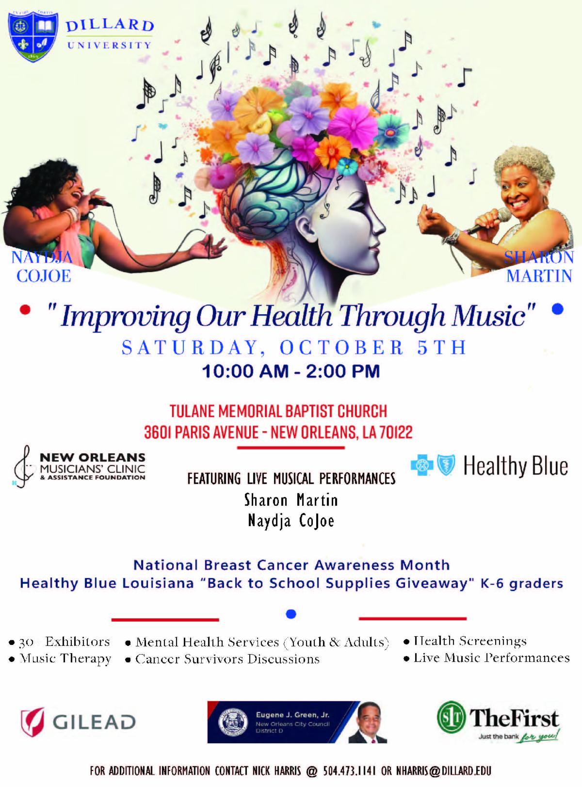 | | BLACK AMERICANA FEST SEPTEMBER 28 | | DILLARD UNIVERSITY ECUMENICAL SUNDAY SEPTEMBER 29 | | DILLARD UNIVERSITY IMPROVING YOUR HEALTH THROUGH MUSIC OCTOBER 5 | | THE BLACK SCHOOL TO HOST 5TH BLACK LOVE FEST AT HUNTER'S FIELD OCTOBER 5 | | SAVE THE DATE GENTILLY FEST OCTOBER 11- 13 | |