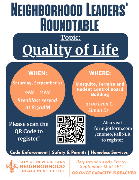 SPOTS FILLING UP: NEIGHBORHOOD LEADERS' ROUNDTABLE ON QUALITY OF LIFE