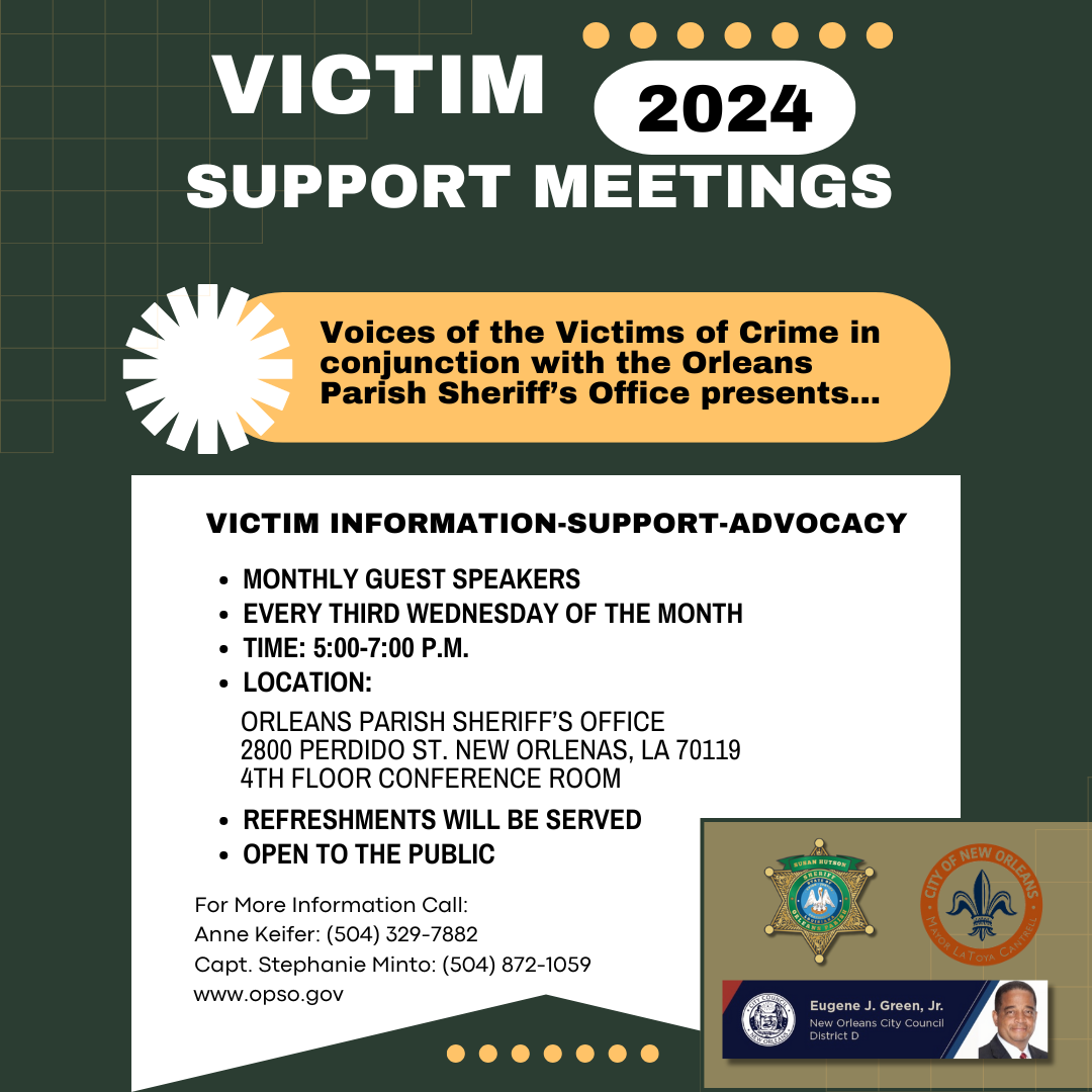 | | 2024 VOICES OF THE VICTIMS OF CRIME SUPPORT MEETINGS: EVERY 3RD WEDNESDAY OF THE MONTH | | WHAT'S GOING ON IN DISTRICT D | |