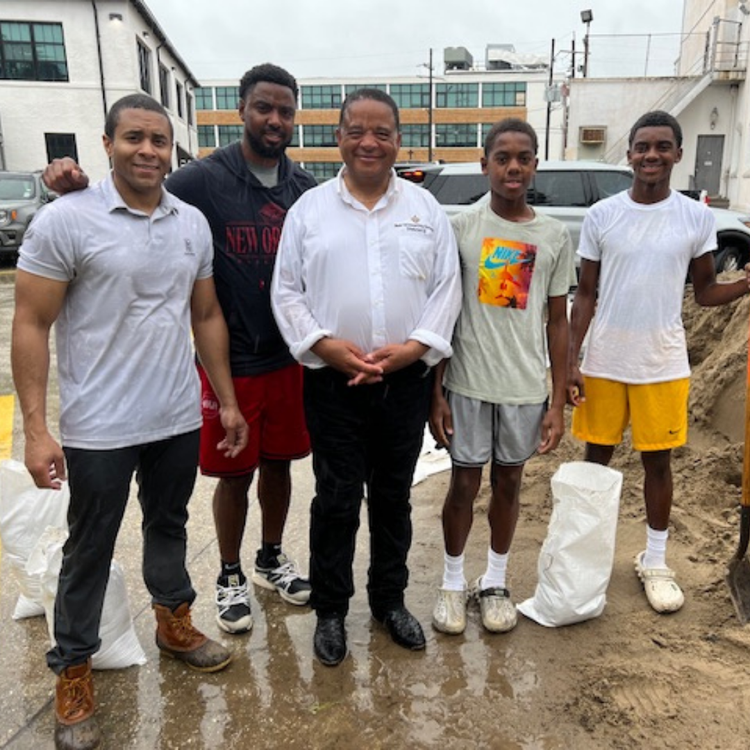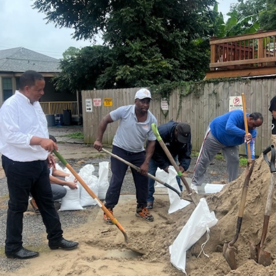 | | Special thanks to the people in the 9th Ward community who came out to assist Constituent Services Liaison Durrell Laurent and Administrative Assistant Pierce W. Huff in a sandbag distribution at the Florida/Desire Multi-purpose center. | | Thank you, neighbor. There are 72,000 storm catch basins in the City of New Orleans. After storms, hundreds of thousands of leaves and twigs / branches sometimes block the entrances. | | Thank you, neighbors. This sensitivity and adherence to guidelines facilitates the more rapid pickup of debris. | | Thank you to the many, many volunteers who stopped by to assist our community in getting prepared for Hurricane Francine with the filling and distribution of many hundred of sand bags, in six hours of rain. Thank you to Rev. Stanley K. Ihuoma, SSJ, and Rev.. Kingsley Ogbuji, SSJ and the family of St. Leo the Great St. Raymond Catholic Church for the use of your church grounds with little advanced notice. Thank you to NOPD Third District Officer Carter and Officer Masters for facilitating traffic flow, in the rain. | | Councilmember Green, Criminal Sheriff Susan Hutson, and members of the American Federation of State, County, and Municipal Employees (AFSCME) at the Greater New Orleans AFLCIO annual Labor Day picnic. | | Councilman Green with Brian Knighten, Owner, The Broad Street Theatre, Kathleen Rhodes Astorga and Joan Rhodes Duncan of Rhodes Enterprises, and Adonis Expose, former King, The Zulu Social Aid and Pleasure Club at the Presidential Debate watch party. | |