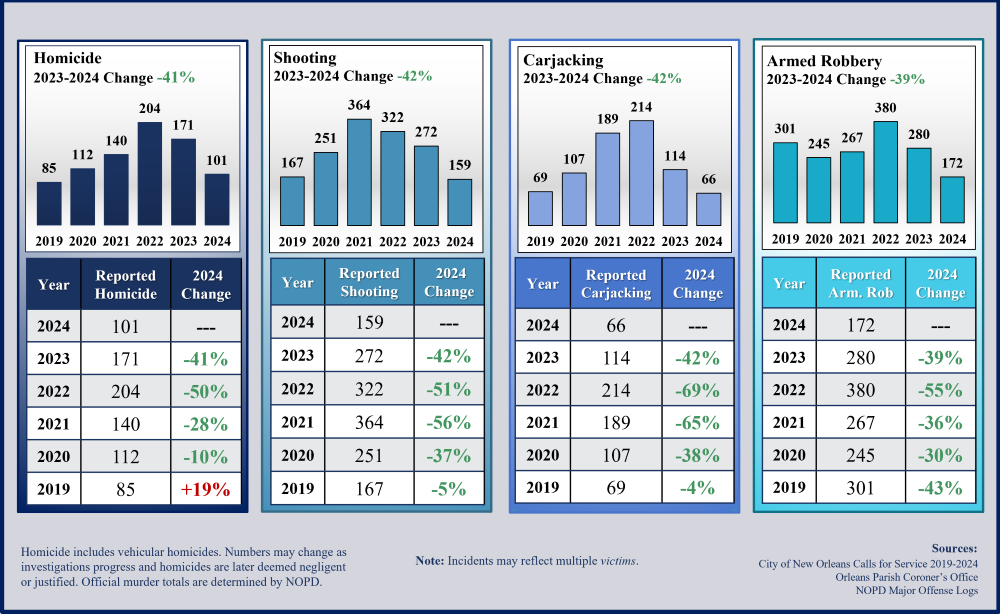 All acts of violent crime are unacceptable. There is still much to be done. However, the work of the Cantrell Administration and of the New Orleans City Council to fund and support the City's law enforcement, and social services, communities is paying dividends in fewer victims of crime. There is still much to be done. Remember the victims. Commendations to local, state, and federal law enforcement / criminal justice partners. JoinNOPD.