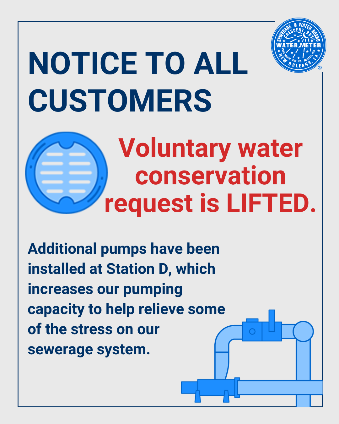 | | SEWERAGE & WATERBOARD WATER CONSERVATION REQUEST LIFTED | |