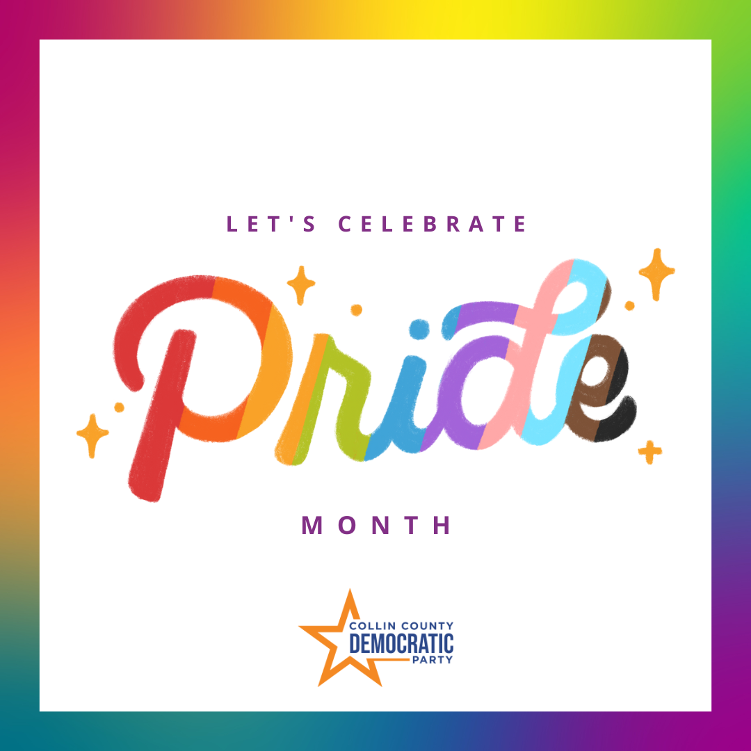 Happy Pride Month! As we celebrate this vibrant and meaningful time of year, the Collin County Democratic Party is proud to stand in solidarity with the LGBTQ+ community. Pride Month is a time to honor the progress we have made in the fight for equality and to recommit ourselves to the ongoing struggle for justice and inclusion.