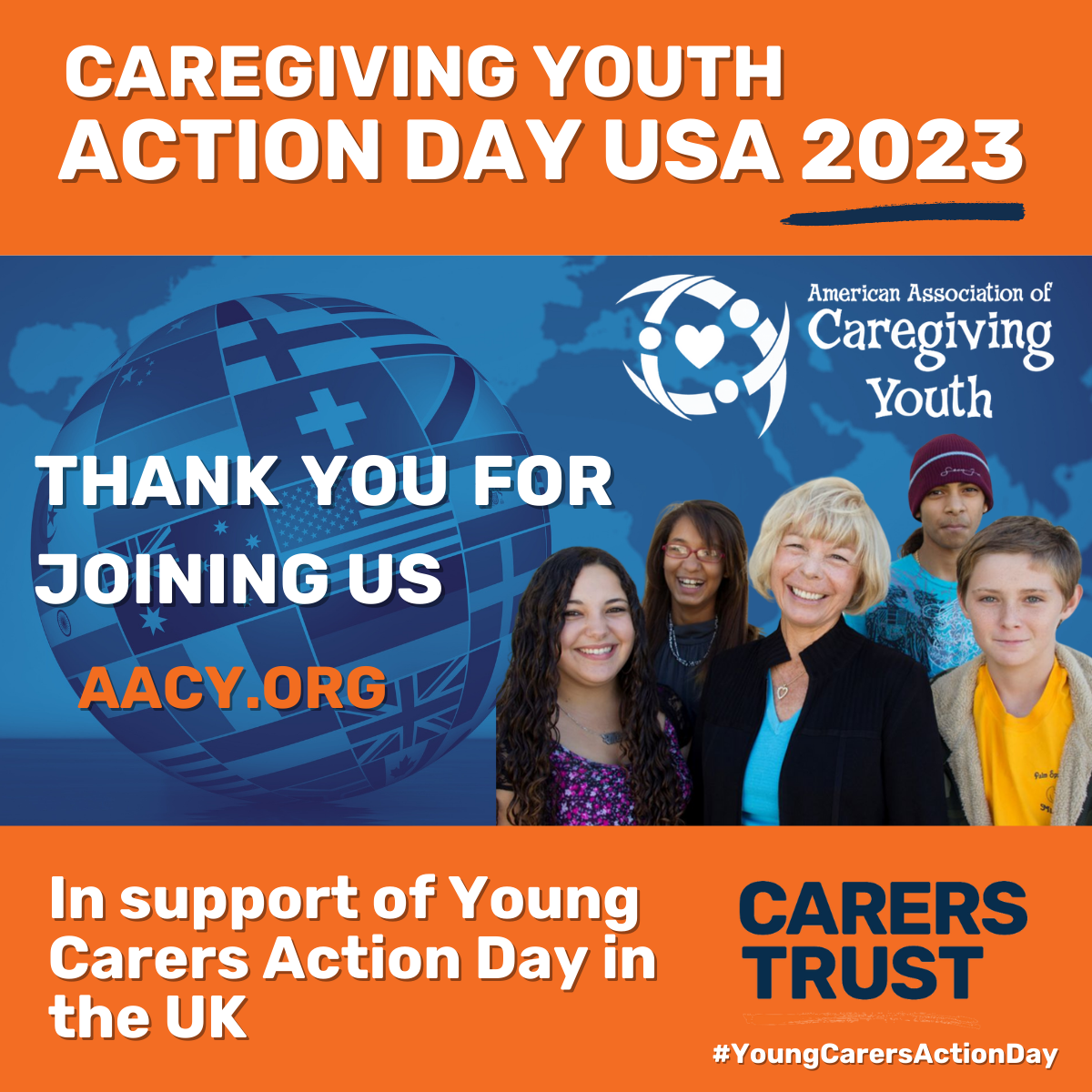 We want to say a big thank you to everyone who took part in Caregiving Youth Action Day USA. This event was to support Young Carers Action Day in the UK. We are grateful for your help in showing support for young caregivers all over the world.