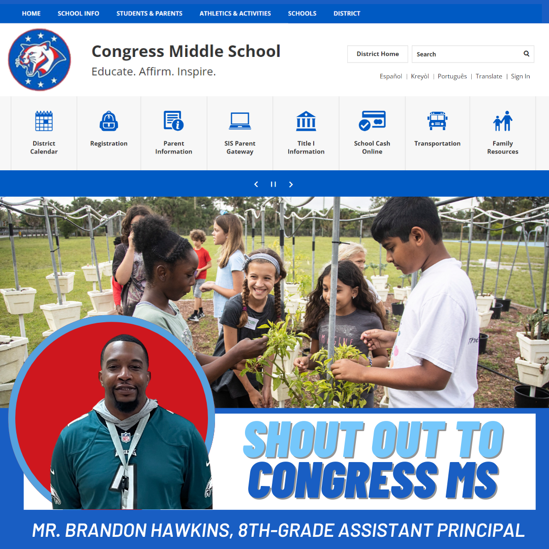 We are pleased to thank and acknowledge Mr. Brandon Hawkins, 8th-grade Assistant Principal, for contributing to an important role in the Caregiving Youth Project at Congress Middle School.