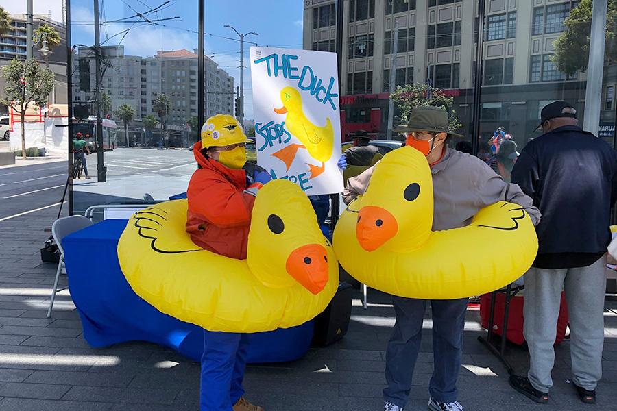 Join the SF Sidewalk Search Party’s regular meeting to learn how to work together to make our sidewalks safer and more accessible. Then, join our Fourth Tuesday Field Trips! Each month, we’ll head to a new neighborhood, searching for sidewalk damage caused by street trees. When we find them, we’ll hang ducks on trees to let people know that the City is responsible for fixing these sidewalks!