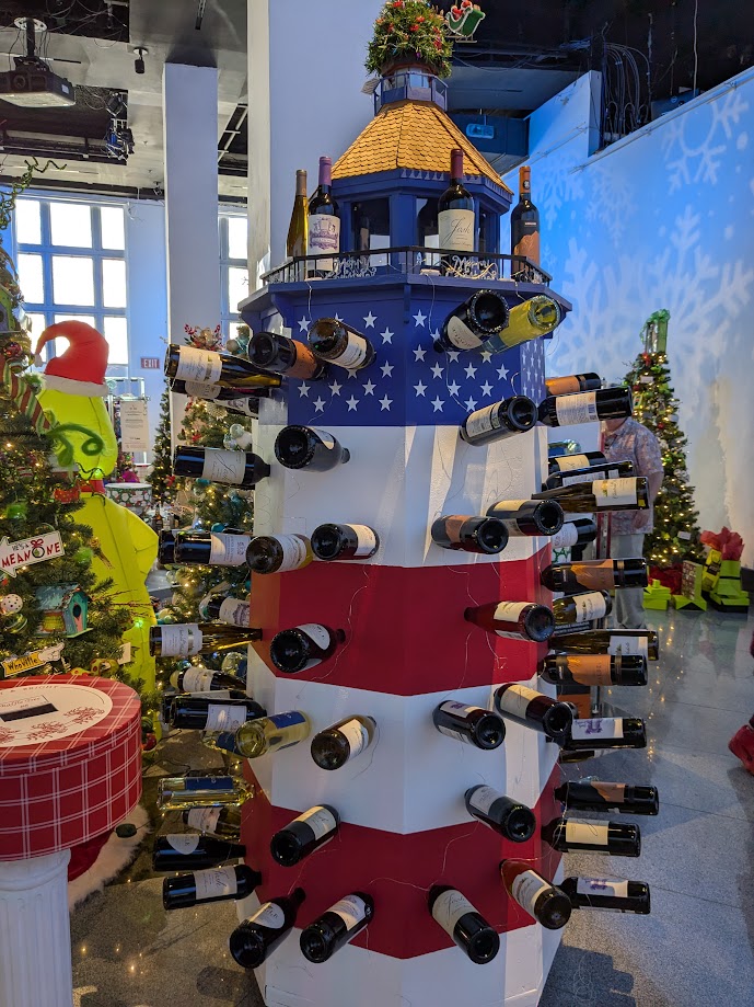 There are about 80 bottles of wine on this tree, won by a long-time Festival of Trees and SBDAC volunteer.