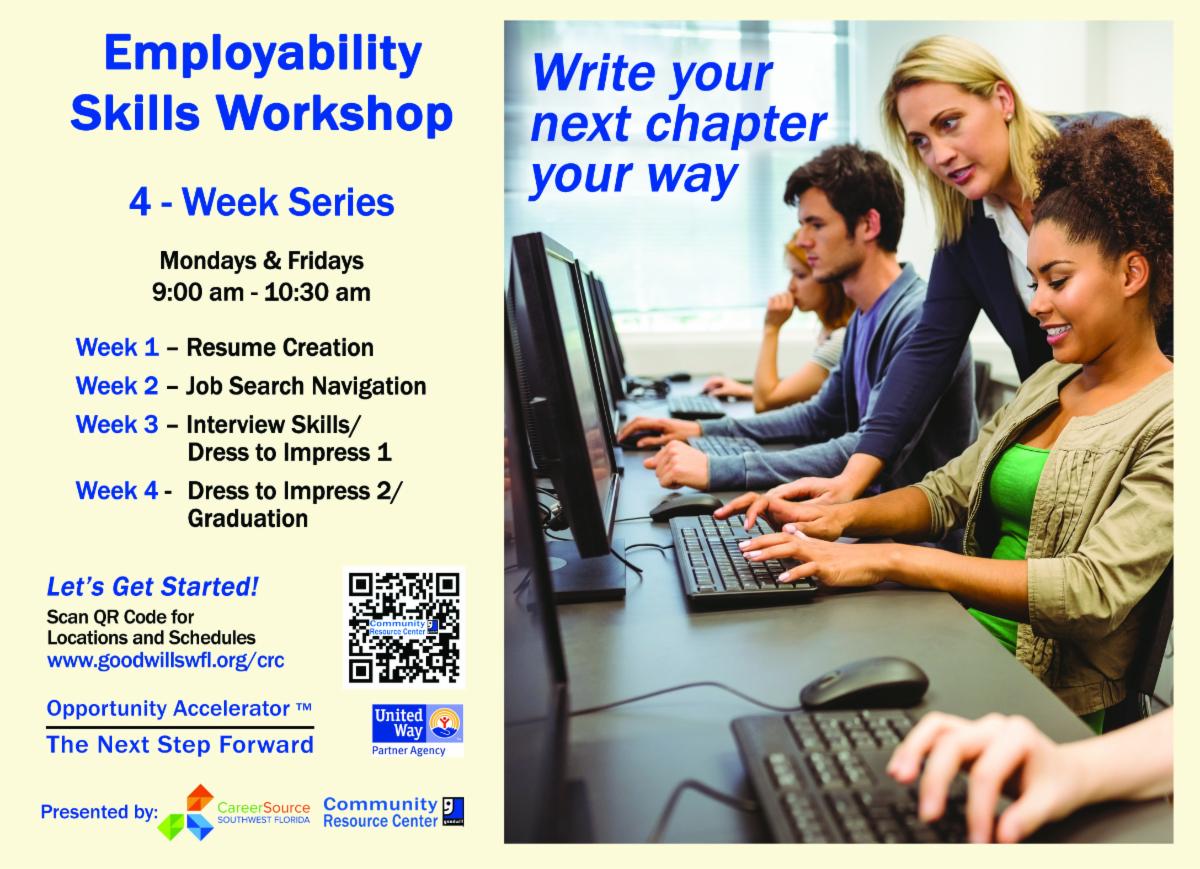 | | | Invest in yourself! Goodwill offers employability skills, digital skills, and other free workshops at all Community Resource Centers throughout SWFL. It just takes a commitment from you to take advantage of these free classes that are aimed at helping you take the next step forward! Click HERE to get started. | | | |
