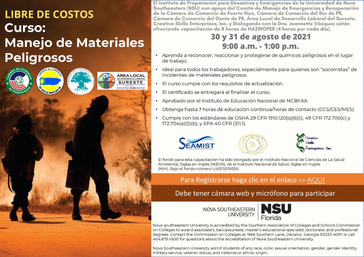 Curso: Manejo de Materiales Peligrosos - Dictado en Español 30 y 31 de agosto
