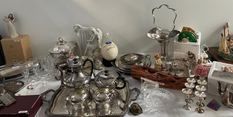 - Assorted silver plate items