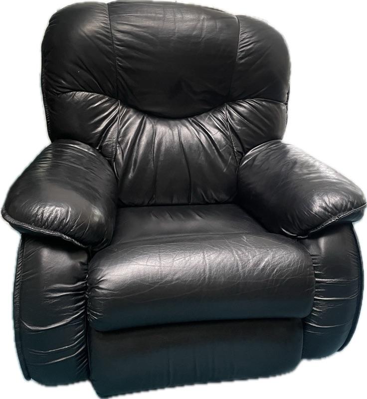 - LazBoy black leather rocker recliner, 39x32x40”