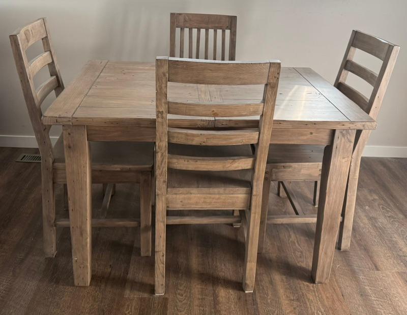 - PGT Reclaimed furniture dining table, 4 chairs, butterfly leaf