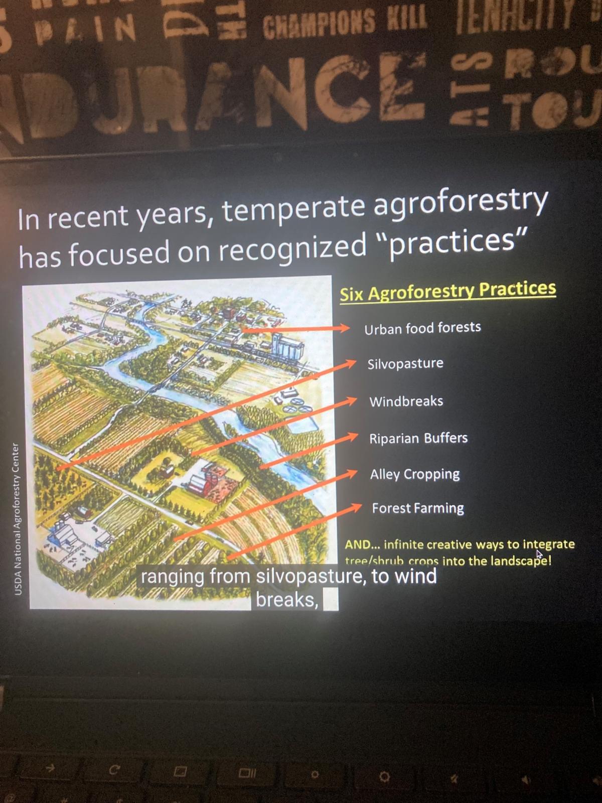 | | | UNH in collaboration with Dartmouth and Yale are embarking on a grant funded initiative focusing on Agroforestry, cultivating our forested land, combining portions of our food system with sustainable forest practices to build climate resilience while creating a strong market for food items. The grant looks specifically at silvopasture practices, forest farming, and food forests as the three universities invest in their own facilities along with collaborator farms by building capacity along with developing research to enhance these practices across the region. 4-H/Cooperative Extension has been tasked with developing training programs for both interested farmers and researchers, and along with educators and teen ambassadors across the state and region. 4-H and NH Ag in the Classroom are in the process of developing trainings and experiences for educators, along with collecting and curating lessons and activities that will help educators use agroforestry principles within their classrooms.