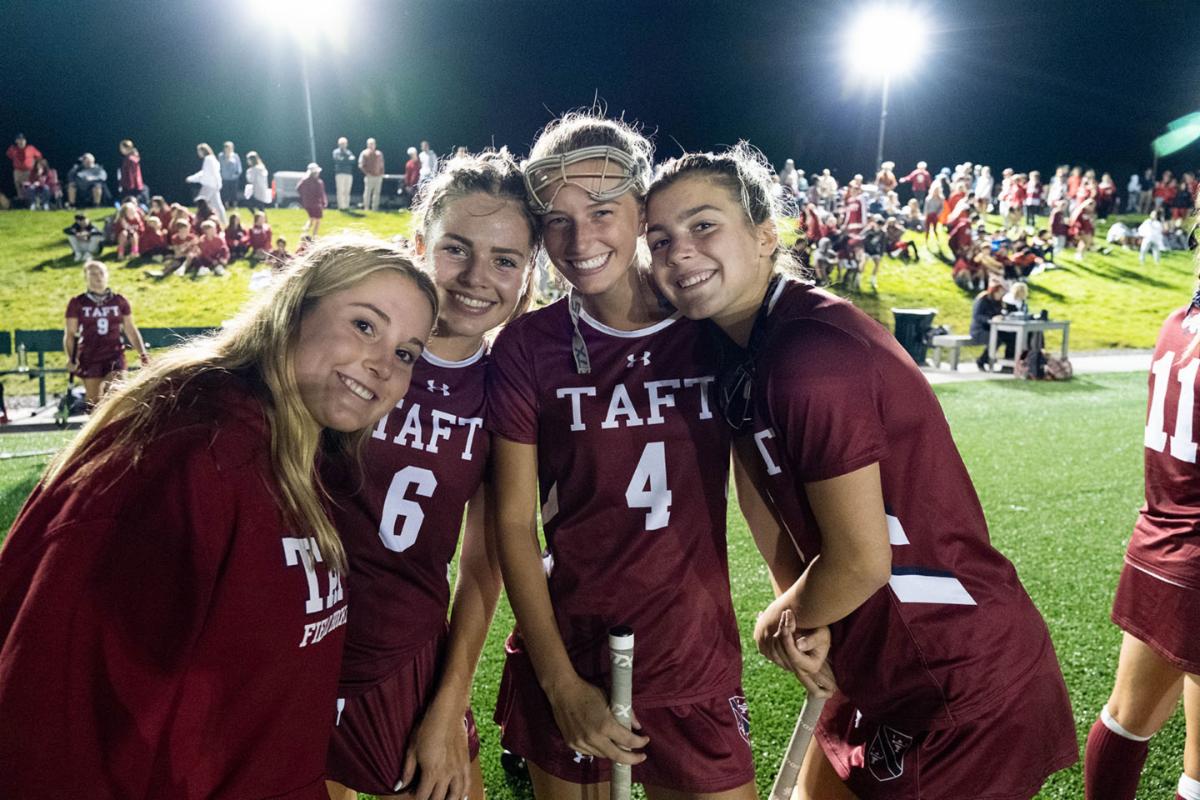 A sea of red adorned Taft’s fields last weekend as the school hosted its first day of home games open to parents and alumni in more than a year. The game day included plenty of tailgate picnics and games under the lights. Taft swept almost all of the contests including big wins for football over Trinity-Pawling, field hockey over Loomis, and boys’ soccer over Andover on the newly turfed Camp field. You can catch up on scores and schedules on the Athletics web pages. And whether you are from the “Go Big Red!” or the “Go Rhinos!” era, we invite you to cheer on Taft athletes on game days as you watch our athletic livestream. Photos of this weekend’s games are available on taftphotos.com. |