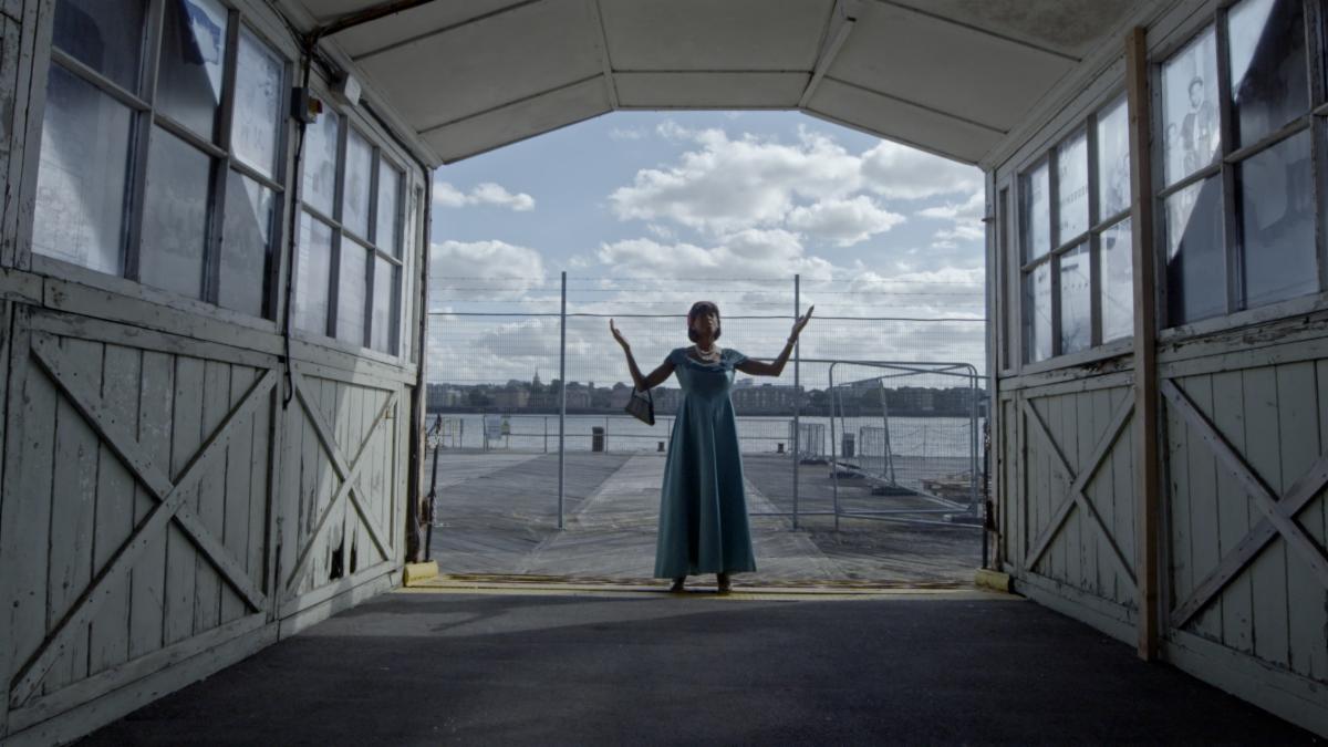 © EVEWRIGHT. Motherless Child a Single Channel Installation. Duration 72 mins: 13 secs. Shot in 4K. Size variable. Images: Featuring Artist and chorister Gary Cordice, at Tilbury Terminal where passengers of the Empire Windrush arrived in1948.