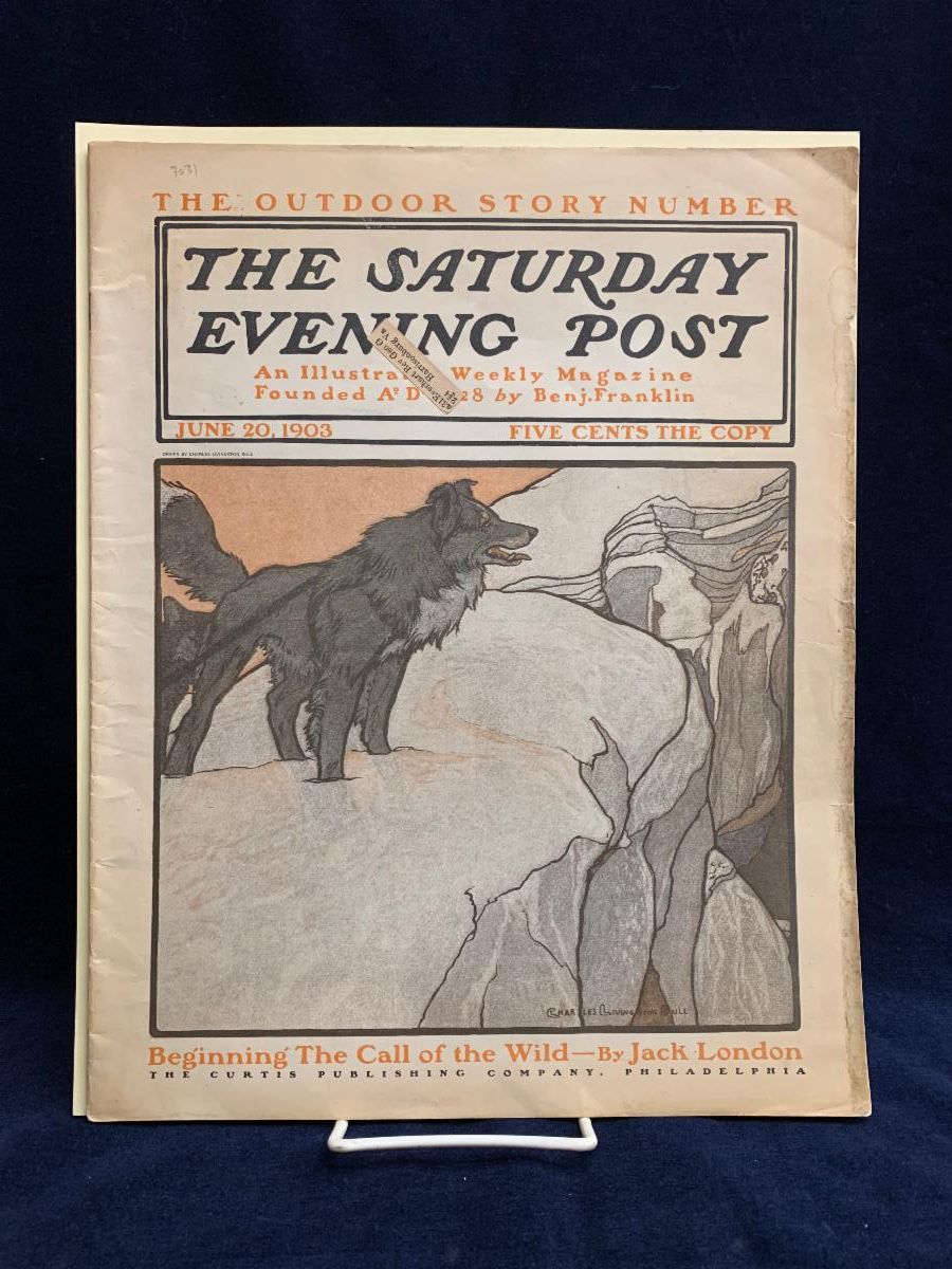 | | | An array of uncommon, optimum, attractive or creepy books and mags: | | Very nice 1908 1st edition of The Unmasking of Robert-Houdin by Harry Houdini, from whose name he adapted his own. Light brown cloth with front cover vignette embossed in chocolate brown and ecru. An excellent copy with a bit of the ink lost from the lettering. $500 | | | Well preserved issue of the June 20, 1903 Saturday Evening Post, containing the first installment of Jack London’s novel, The Call of the Wild, with a great cover illustration by Charles Livingston Bull who contributed illustrations to the book, which would be released by Macmillan in July. Yellowed with some faint moisture staining around edges. Contemporary address label on masthead. $450 | | | 1st printing of Bruce R. McConkie’s long controversial Mormon Doctrine in the uncommon and (I suppose, therefor) sought black binding with the typically greening gilt (some of us think it looks better) vignette of Joseph Smith on the front cover. Our copy is without dust jacket and bears inscriptions from previous owners. $400 | | | Hundreds of artists have taken on the stories of Edgar Allan Poe and the illustrations of Harry Clarke are among my favorites. We presently offer a copy of the 1933 New York Tudor edition of Tales of Mystery and Imagination containing Clarke’s creepy images. Black cloth quarto with a pictorail label in on front cover. Sturdy but lacking both dust jacket and box in which it was issued. $100 | | | Bookseller Recommendations | | |