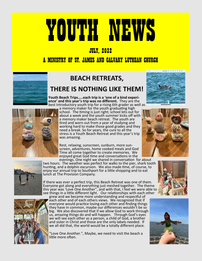 Children's Church during worship will be on the first three Sundays of each month. It will be designed for children up to the second grade. We hope to expand to every Sunday as more volunteers are identified. Our youth director, Mike Holt, will be leading this ministry. Martha Matthews will be facilitator on the second Sunday of each month.