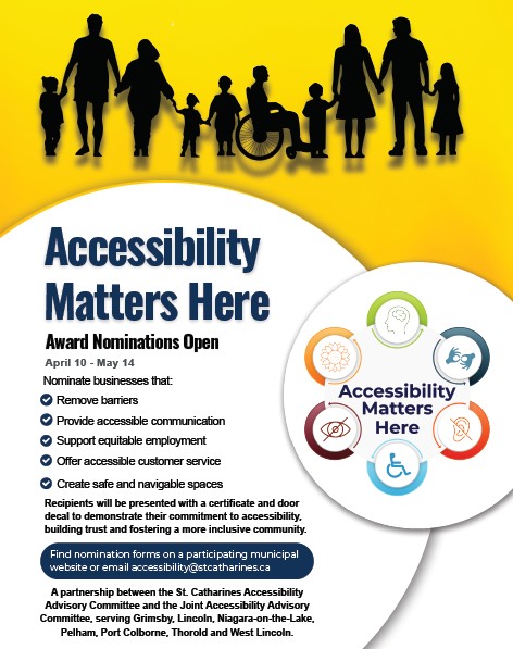 The City of St. Catharines Accessibility Advisory Committee (AAC) is inviting nominations for the Accessibility Matters Here Award, recognizing local businesses that are making meaningful strides toward accessibility and inclusion.