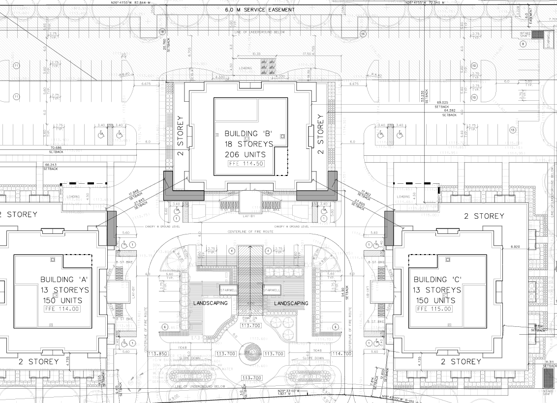 Council approved amendments for three proposed apartment buildings totaling 506 residential units with 607 parking spaces. The development concept includes two 13-storey, 150-unit buildings, and one 18-storey, 206-unit building, with one level of underground parking connecting the three buildings, a small surface parking area at the front of the site and a larger surface parking area at the rear of the site. The site is located on the east side of Ellis Avenue, north of Abbot Street.
