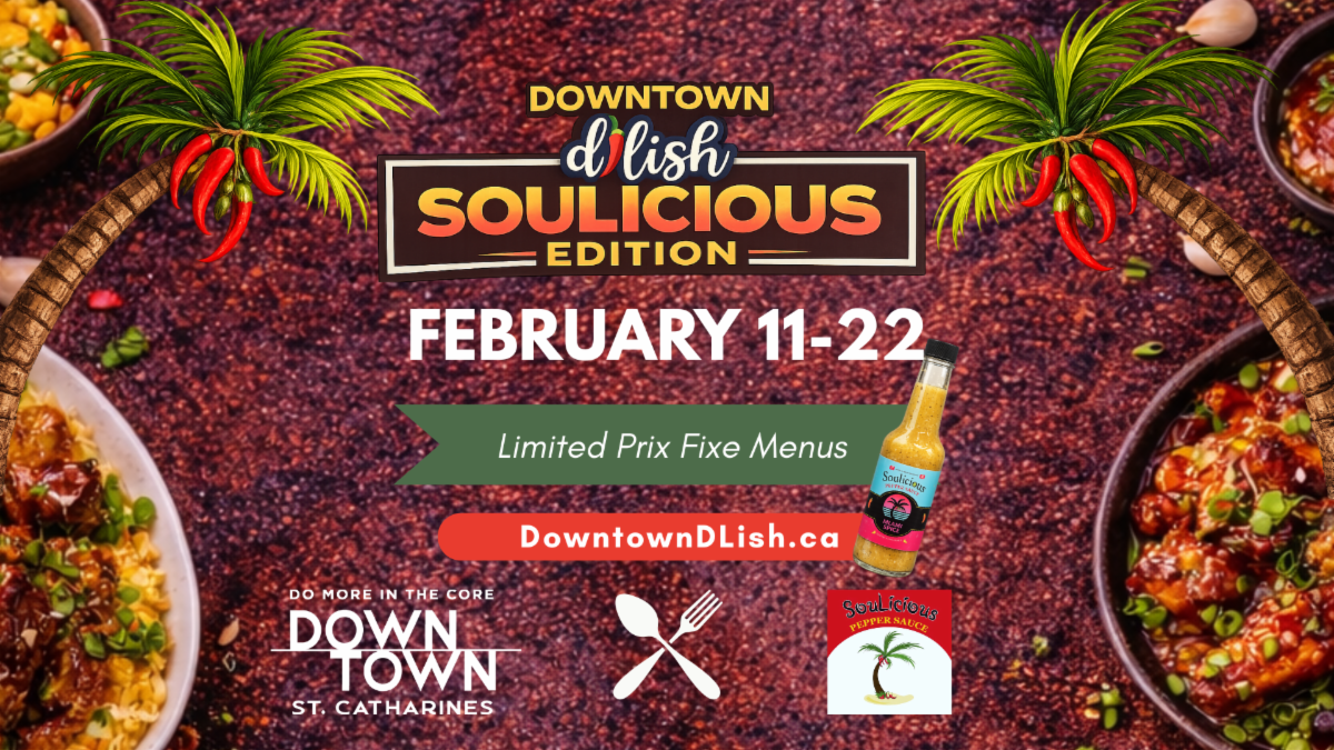 Winter doesn’t have to feel so blah in Downtown St. Catharines. This February, we’re bringing the flavour back with Downtown D’Lish: Soulicious Edition, running from February 11 to 22. Our signature dining event returns during Black History Month, featuring a special partnership with Soulicious Pepper Sauce, a local, Black-owned business.