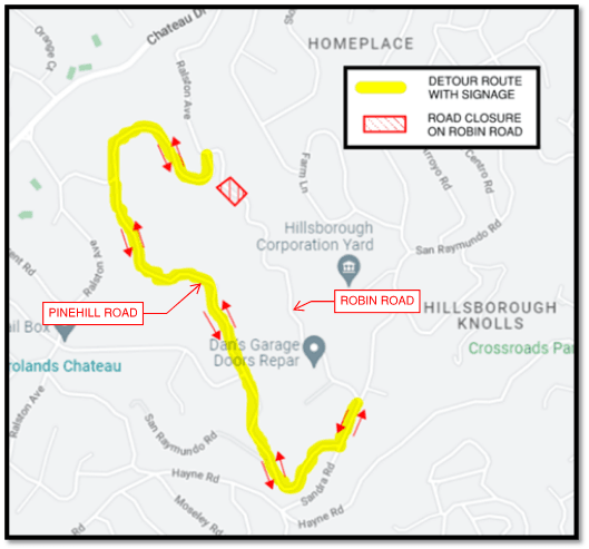 - Pinehill Road should be used for all through traffic while Robin Road is closed for construction.