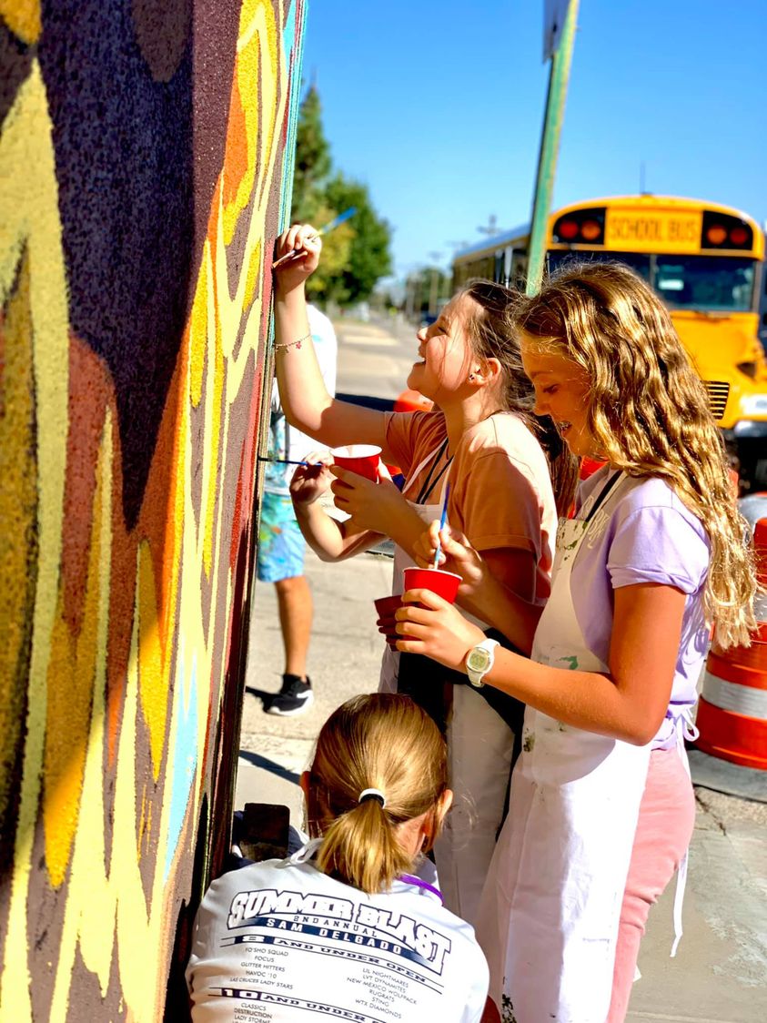 Photo: Community Happy Mural by Alyssa Marie & Braden Everly. More than 200 Artesians helped paint this community mural over a five day period. |
